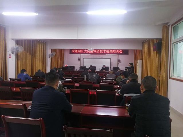 新型冠状病毒疫情期间,园区承担的“大通湖区大闸蟹产业技术服务”项目有序开展。2月28日,大通湖区大闸蟹养殖技术视频培训会在区农业农村和水利局四楼会议室召开。副区长周军参加会议并作重要讲话,该局相关领导、畜牧水产股工作人员,各镇畜牧站站长、大闸蟹养殖企业和养殖户等20余人参加。