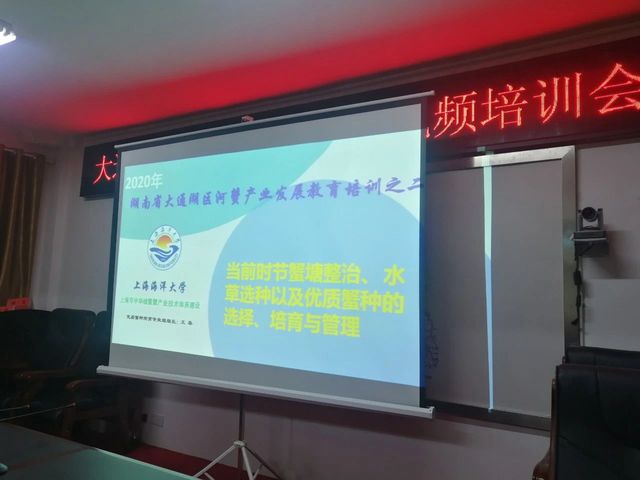 新年伊始,大通湖区的大闸蟹养殖户们已经开始了养殖的前期准备工作。园区作为“大通湖区大闸蟹产业技术服务”项目的承担单位,园区承担着对大通湖区内大闸蟹养殖户的技术指导工作。由于疫情原因,园区组织专家采用远程视频指导教学,园区水产养殖首席专家王春高级工程师就当前季节对大闸蟹的危害、存在的问题及影响,养殖环境、水草种植、养殖方法、养殖使用的饲料和药物、养殖模式、养殖户提出的问题进行了视频技术指导。