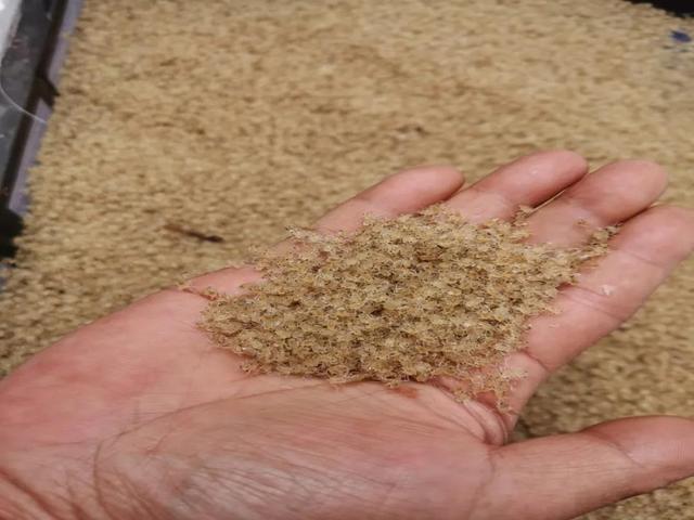 今天,园区一行再次来到湖南宏硕生物科技公司,查看扣蟹的生长情况。扣蟹放苗完成的第三天已经全部完成变态脱壳。