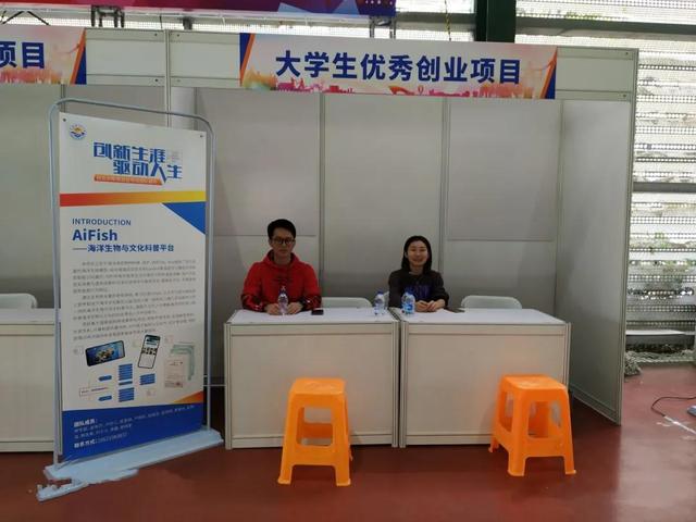 在双选会上,还有一排展位引人注目,那就是大学生优秀创业项目展示,此次园区组织七项在孵大学生创新创业项目参展,分别是RXMAX——生态节能水族造景缸租售新模式、AiFish——海洋生物与文化科普平台、基于深度学习的三角警示小车、模块化水质检测水宝、贰贰叁工作室、海洋万能墙、阿智网——大学生的教育小管家。