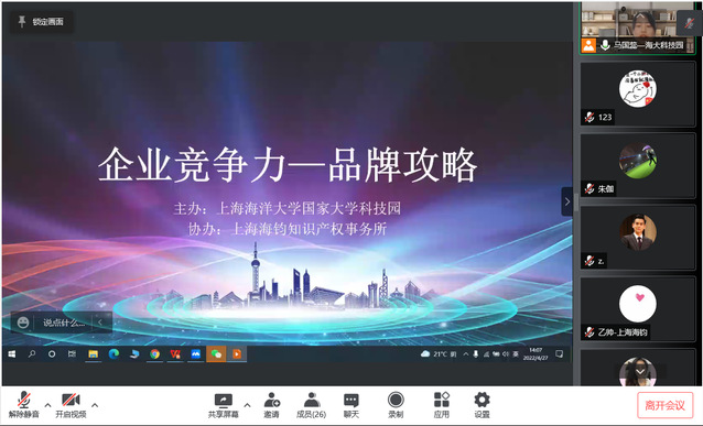 在孵企业参加上海海洋大学外国语学院《创业人生》线上分享会