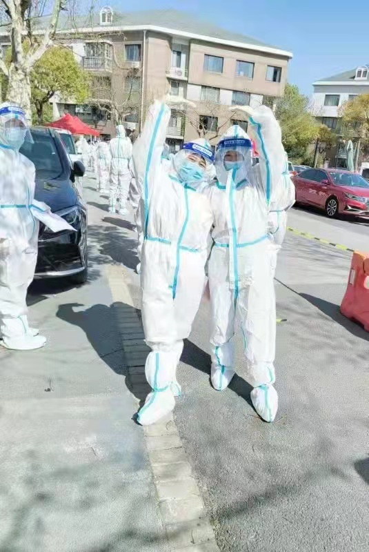 所在小区疫情正当紧张之时,园区创新事业部助理操蓉自告奋勇当起了楼组长,坚守疫情防控第一线,作为防疫志愿者的她,换上了“大白”防护服,严格按照社区防疫相关规定,对小区楼栋进行喷洒消毒,及时通知安排各个楼道的居民进行核酸检查,做好现场的秩序维护工作,将防疫物资运送至小区各处,提醒居民做好自身防护。她说“能为人民服务,为社区防疫工作贡献自己的一份力量,我感到非常荣耀。”