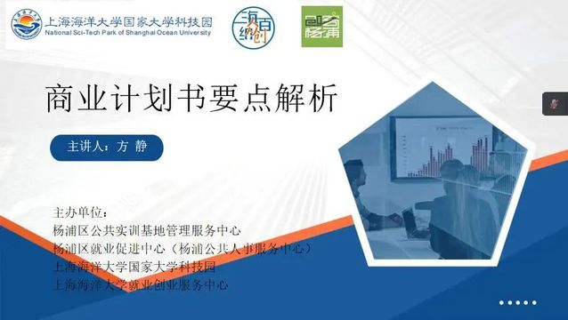 5月13日下午,“商业计划书要点解析”线上活动成功举办!本次活动由上海海洋大学国家大学科技园联合杨浦区就业促进中心及上海海洋大学就业创业服务中心主办,活动吸引了近90家团队参加,科技园创新事业部马国蕊主持活动。