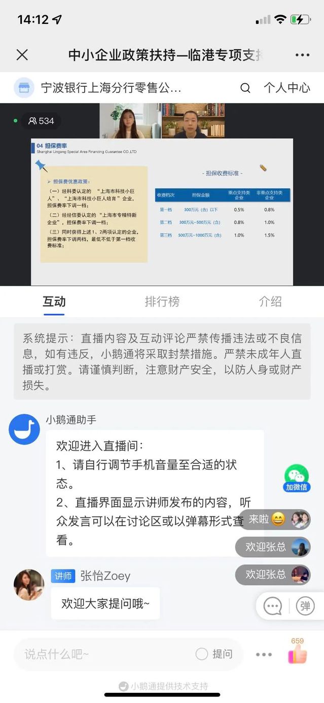 5月19日下午,聚焦临港新片区——中小企业金融扶持发展线上活动成功举办,本次活动由宁波银行上海临港支行、上海临港新片区融资担保公司主办,上海海洋大学国家大学科技园协办。