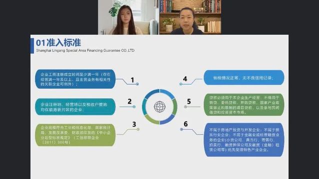 此次活动分为两个部分开展。首先,上海临港新片区融资担保公司张总受邀为大家讲解了临港新片区十四五期间重点发展产业、国家重点支持的七大新兴战略规划等,随之展开了贷款担保费率、利息补贴、融资租赁等的介绍。