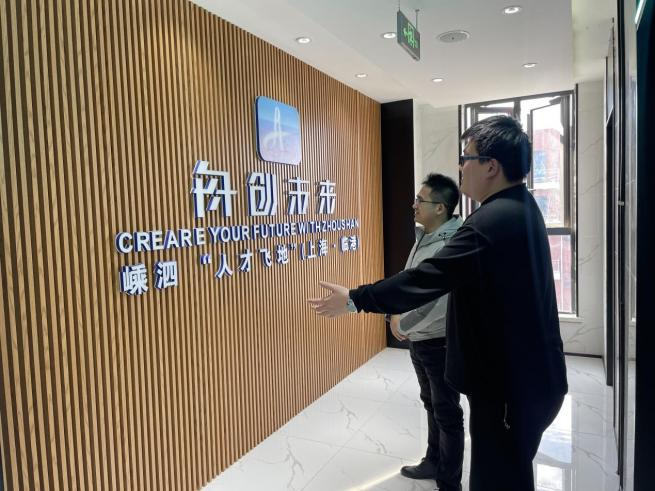 近日,绍兴市启迪孵化器总经理赵晨翔莅临园区嵊泗“人才飞地”参观调研,园区嵊泗“人才飞地”负责人潘成俊陪同接待。