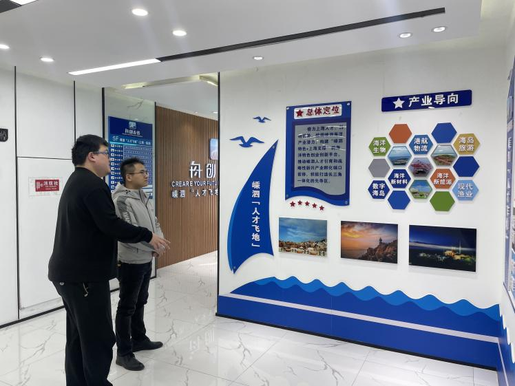 参观中,飞地负责人潘成俊就嵊泗“人才飞地”总体定位、发展概况、企业成果、产业导向及目前取得的成效等方面内容进行了简单介绍。