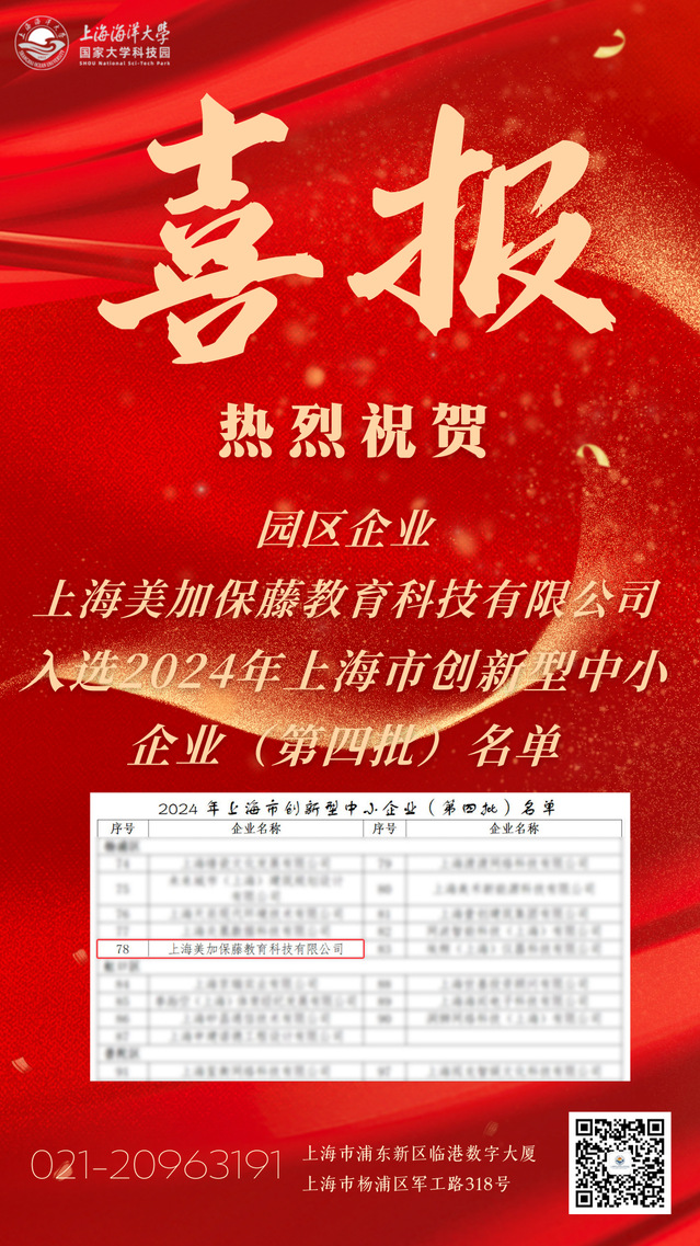 【喜报】园区1家企业入选2024年上海市创新型中小企业(第四批)名单