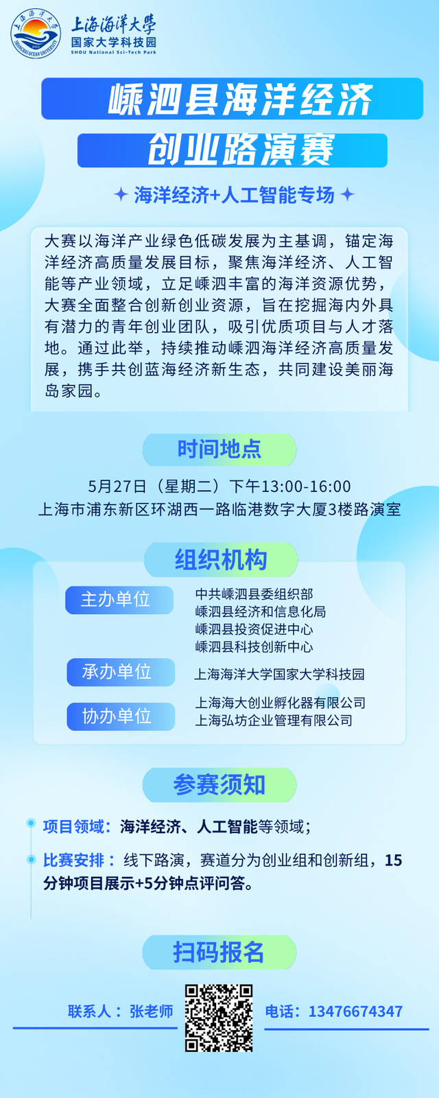 【活动预告】嵊泗县海洋经济创业路演赛报名通道已开启!