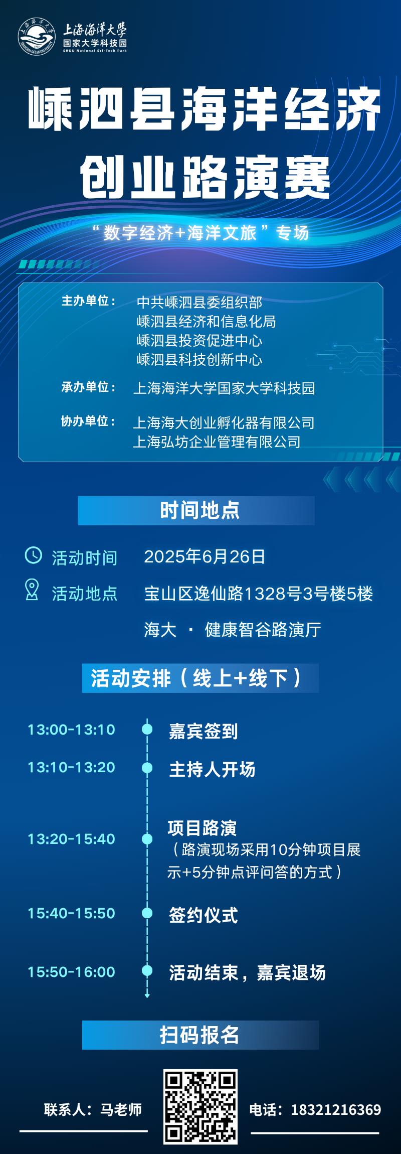 【活动预告】嵊泗县海洋经济创业路演赛——“数字经济+海洋文旅”专场活动报名已开启
