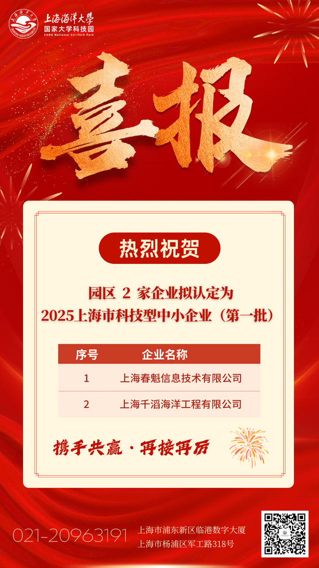 【喜报】热烈祝贺园区2家企业拟认定为2025年上海市科技型中小企业(第一批)