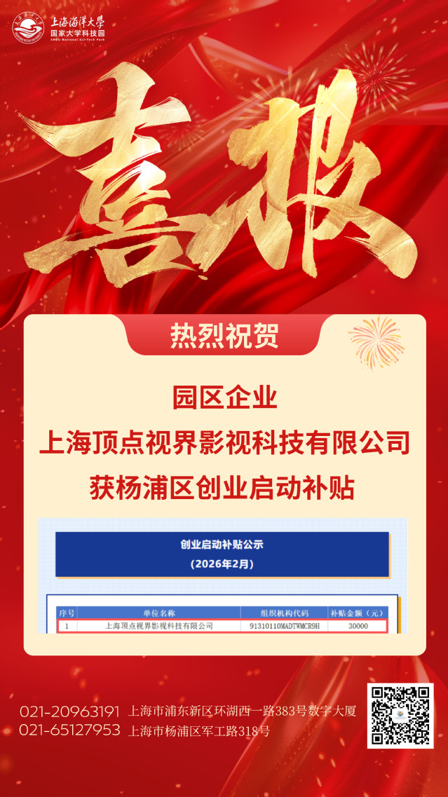 【喜报】园区1家企业成功获批杨浦区创业启动补贴