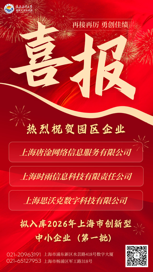 【喜报】园区3家企业拟入库2026年上海市创新型中小企业(第一批)